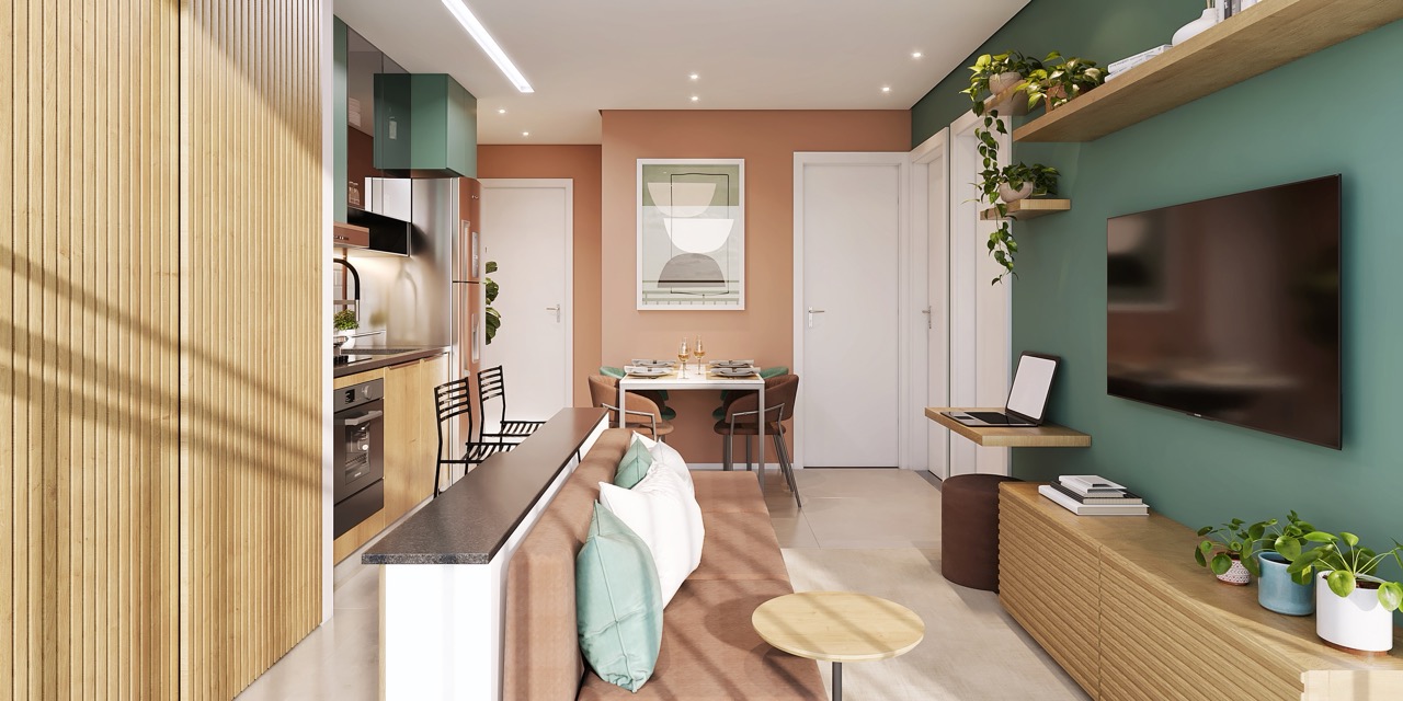 Todas as imagens, perspectivas artísticas, fotos e paisagismos apresentados neste material são meramente ilustrativos e sujeitos a alterações. O projeto será entregue conforme o memorial descritivo e o contrato de compra e venda, que serão formalizados após o registro do empreendimento. Este material não constitui oferta ou promessa de venda, estando condicionado à aprovação dos órgãos competentes e à regularização do empreendimento.